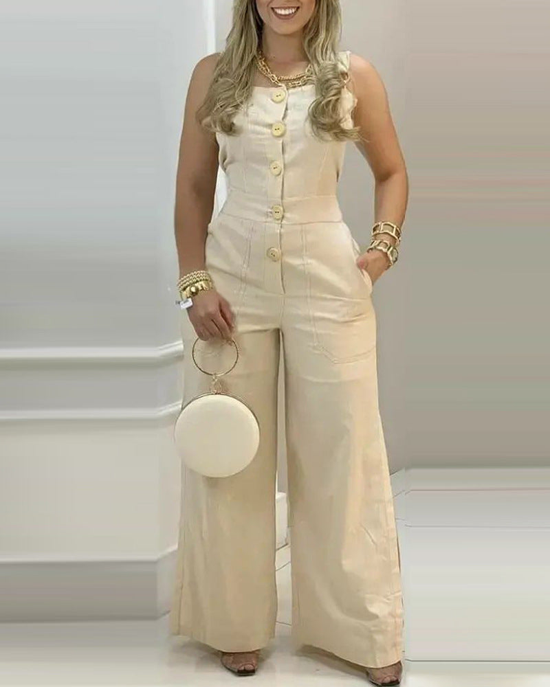 Macacão Feminino com Botões e Abertura Lateral