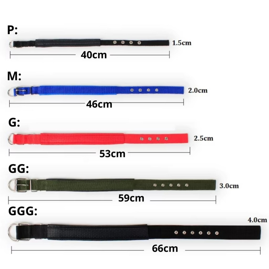 Disponível em várias cores vibrantes, incluindo Vermelho, Azul, Verde Militar, Preto e opções com detalhes em duas cores, a coleira combina estilo e funcionalidade para cães de todos os tamanhos e raças.