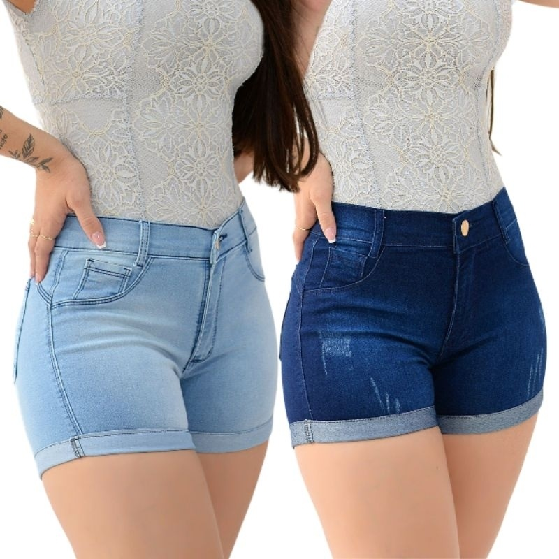 Dois shorts em lavagens diferentes (jeans claro e jeans escuro), ampliando as possibilidades de combinações no guarda-roupa.