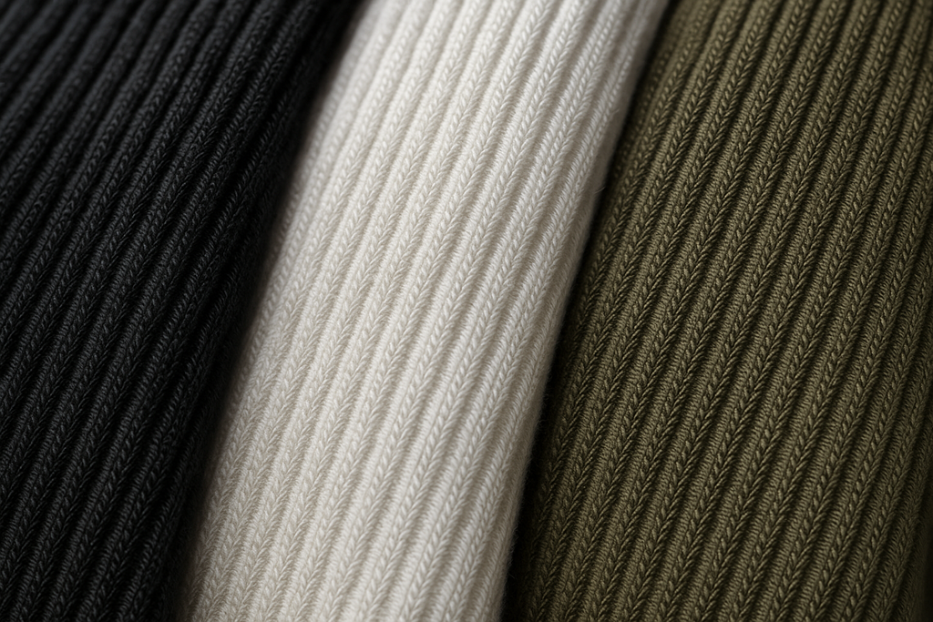 Tecido canelado: Mais flexibilidade, caimento elegante e resistência.
