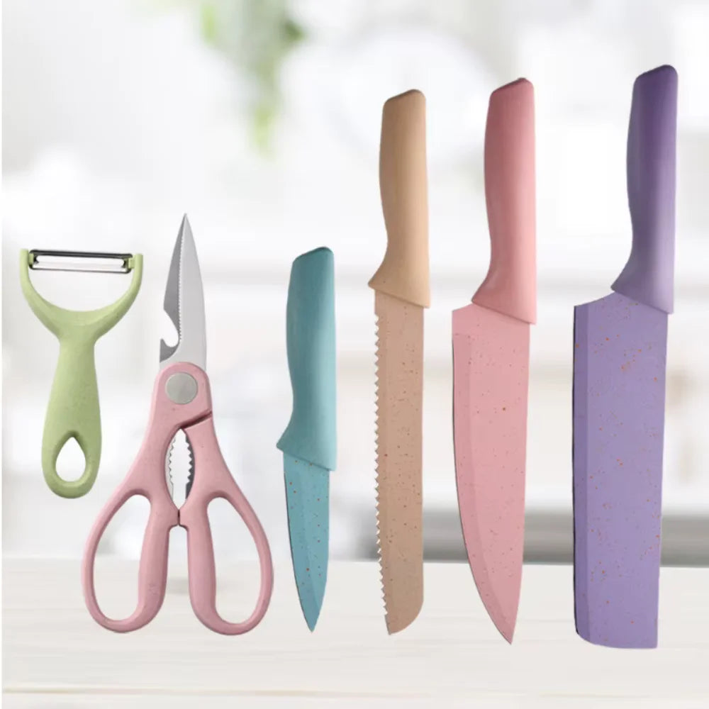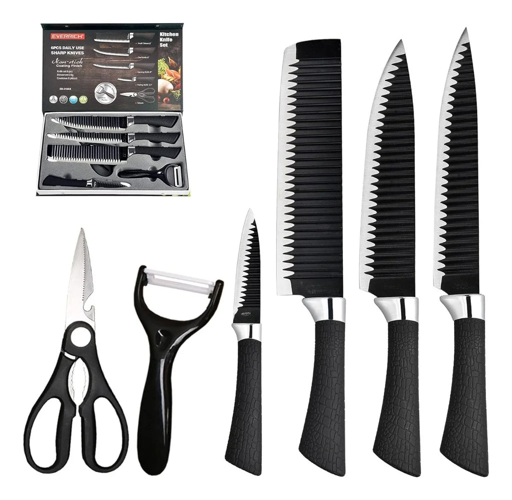 Este conjunto de facas é ideal para cortar frutas, vegetais e carne. As lâminas são feitas de aço inoxidável de alta qualidade com revestimento antiaderente, o que facilita a limpeza