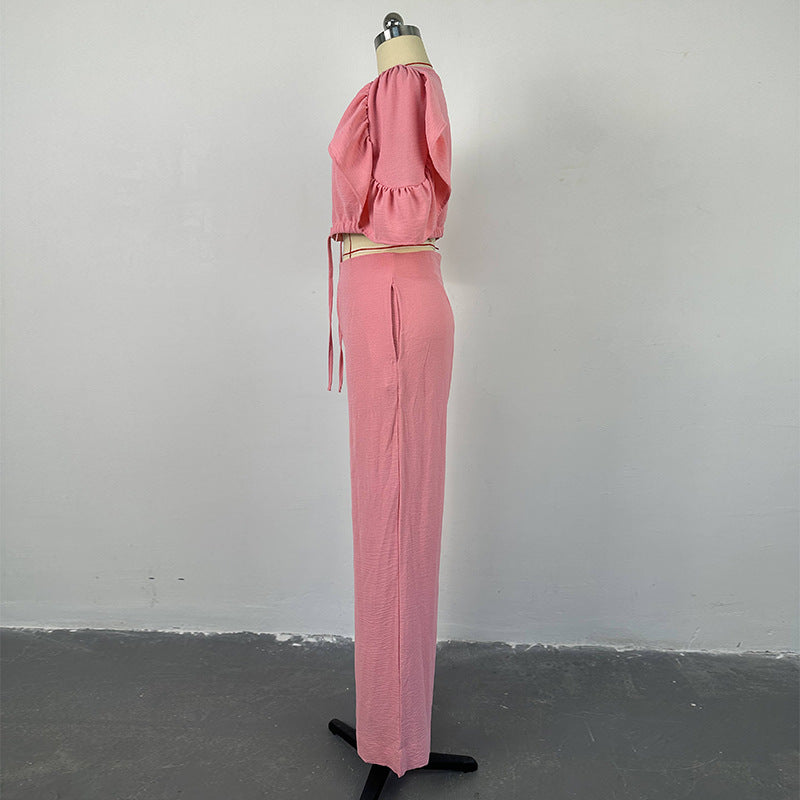 Conjunto Feminino de Blusa e Calça com Mangas Bufantes