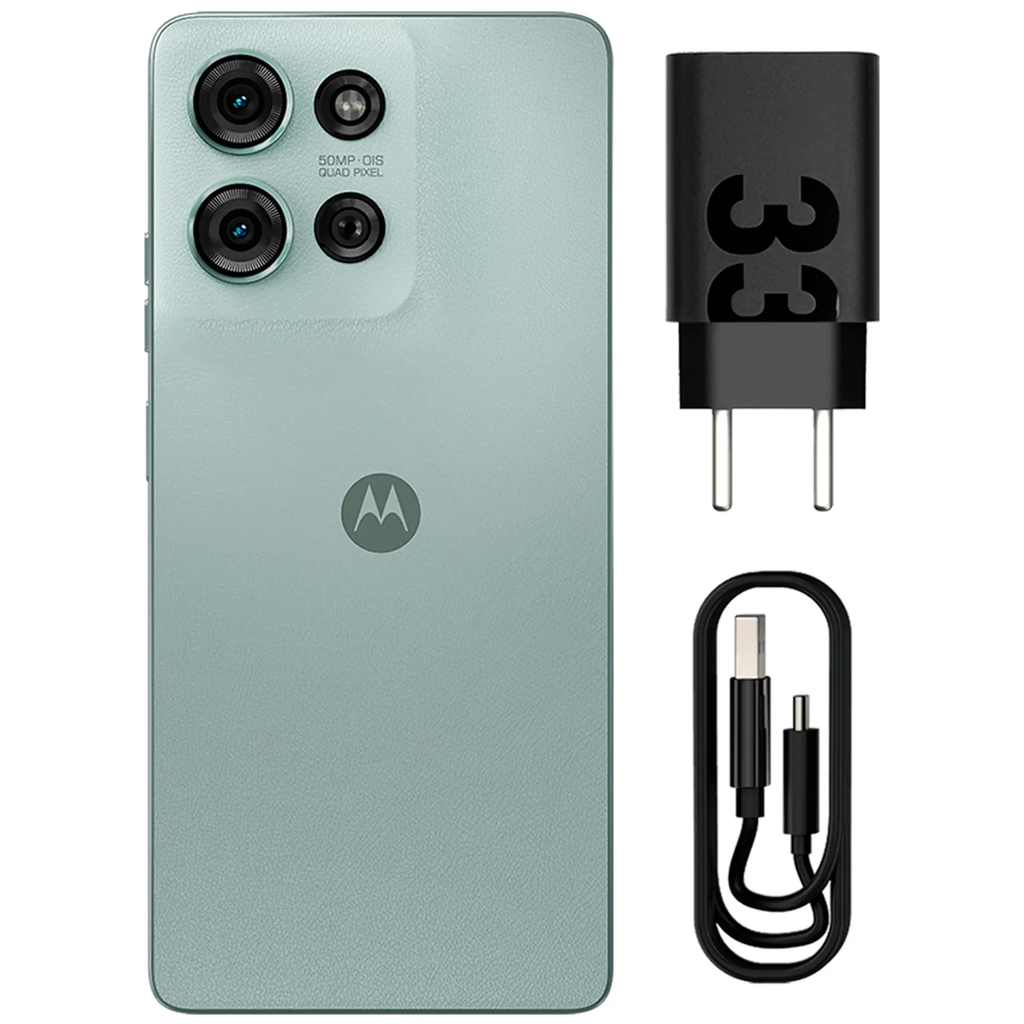Conteúdo da embalagem Conteúdo da embalagem: 1 Smartphone Motorola, Manual, 1 Cabo USB-A/USB-C, 1 Carregador TurboPower de 33 W, 1 Ferramenta de remoção de chip